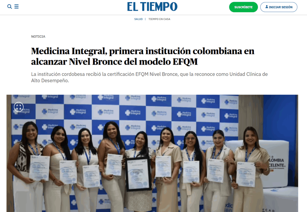 Medicina Integral acaba de escribir un capítulo histórico para la salud en Córdoba: somos la primera institución del país en alcanzar el Nivel Bronce del modelo EFQM como UCAD (Unidad Clínica de Alto Desempeño) en la ruta de Promoción y Mantenimiento de la Salud.