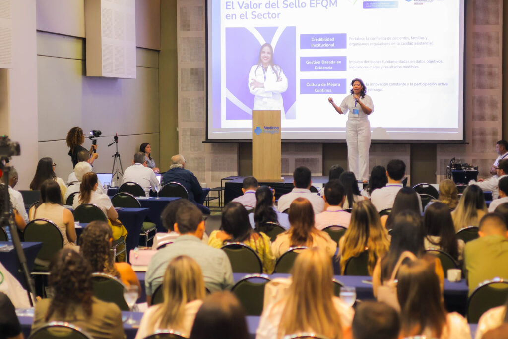 Medicina Integral aprovechó el espacio para compartir su experiencia como primera institución en Colombia acreditada como Unidad Clínica de Alto Desempeño (UCAD) en Promoción y Mantenimiento de la Salud bajo el modelo EFQM nivel Bronce, demostrando con indicadores reales cómo los procesos de calidad impactan directamente la vida de los pacientes. Las ponencias abordaron desde los cimientos del sistema de fortalecimiento de la atención primaria y construcción de resiliencia institucional hasta aspectos específicos como prevención de infecciones en poblaciones vulnerables, integración entre niveles de atención, innovación tecnológica en educación médica continua y la recuperación del componente humano en el servicio de salud.